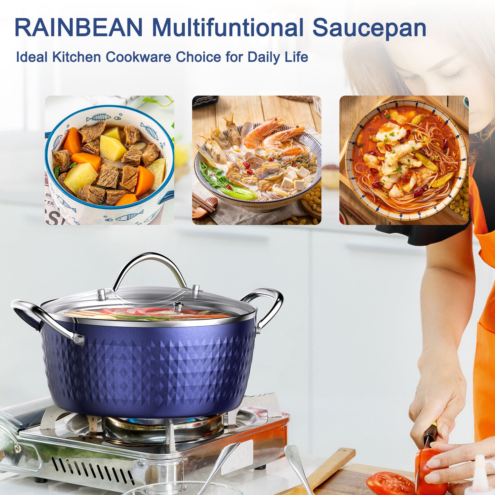 【Non Stick Coating & Induction Pot】Casserole Pot with sturdy aluminum construction. 3.2mm thickened edge allows liquid to flow out smoothly without overflowing. 4L saucepan with lid is ideal for heating up sauces, making ramen, oatmeal, and spaghettios with meatballs.